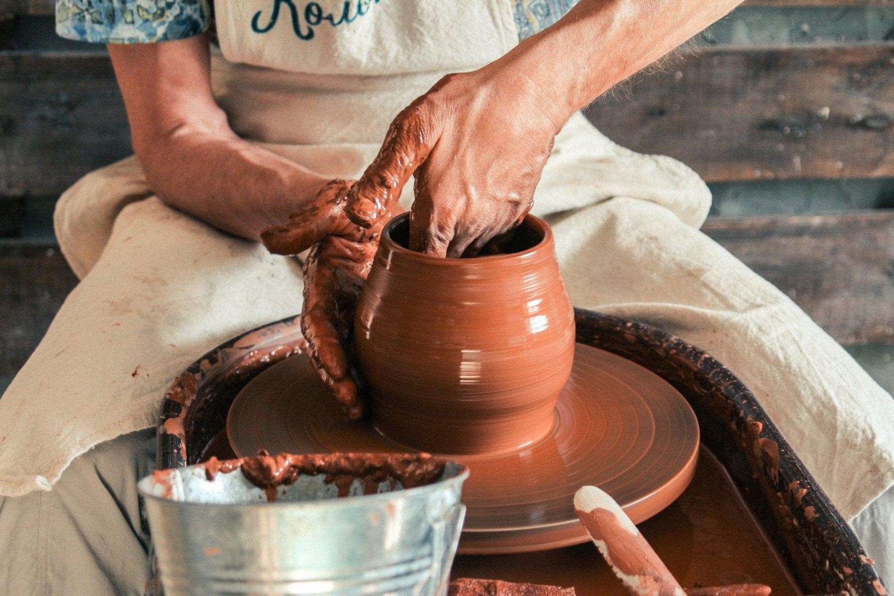 - العمل على عجلة الفخار لتنفيذ الشكل المطلوب